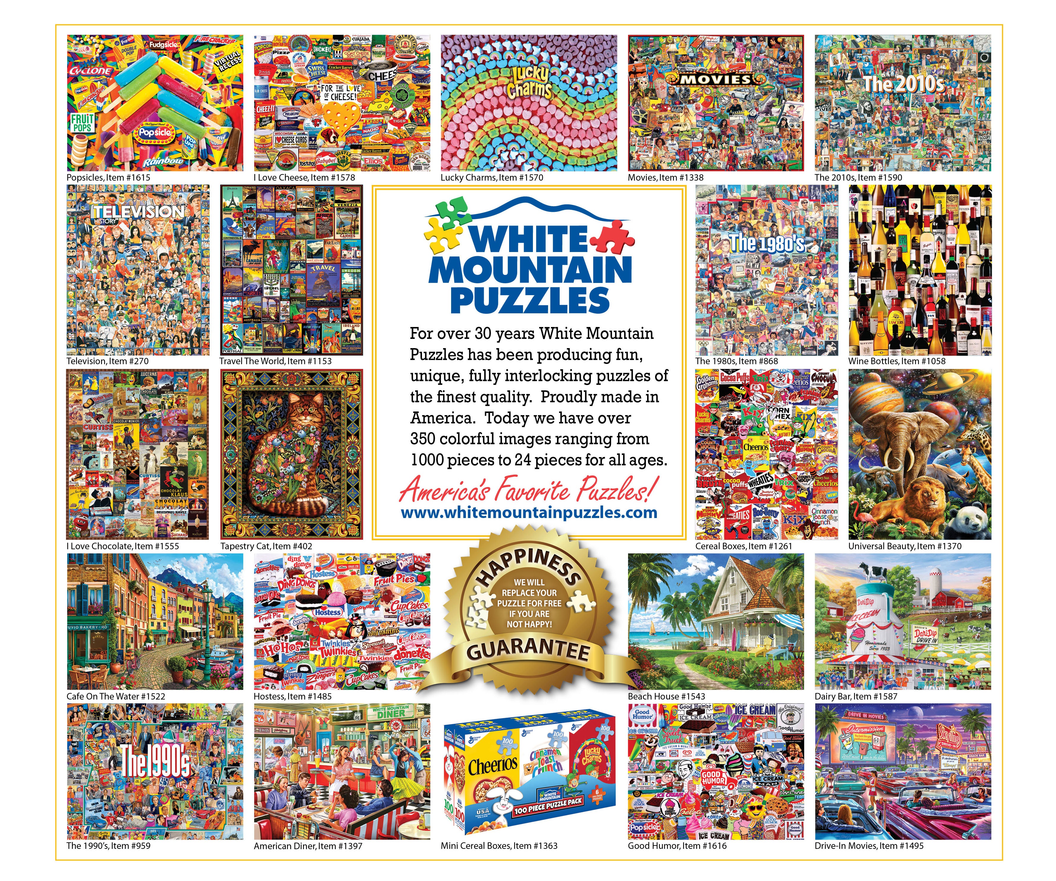For over 30 years, White Mountain Puzzles has crafted the highest quality puzzles made for the entire family to enjoy. We offer colorful jigsaw puzzles from recognized artists, available for all ages and all levels of difficulty.